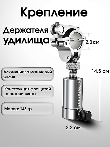 Диаметр держателя удилища до 22 мм,