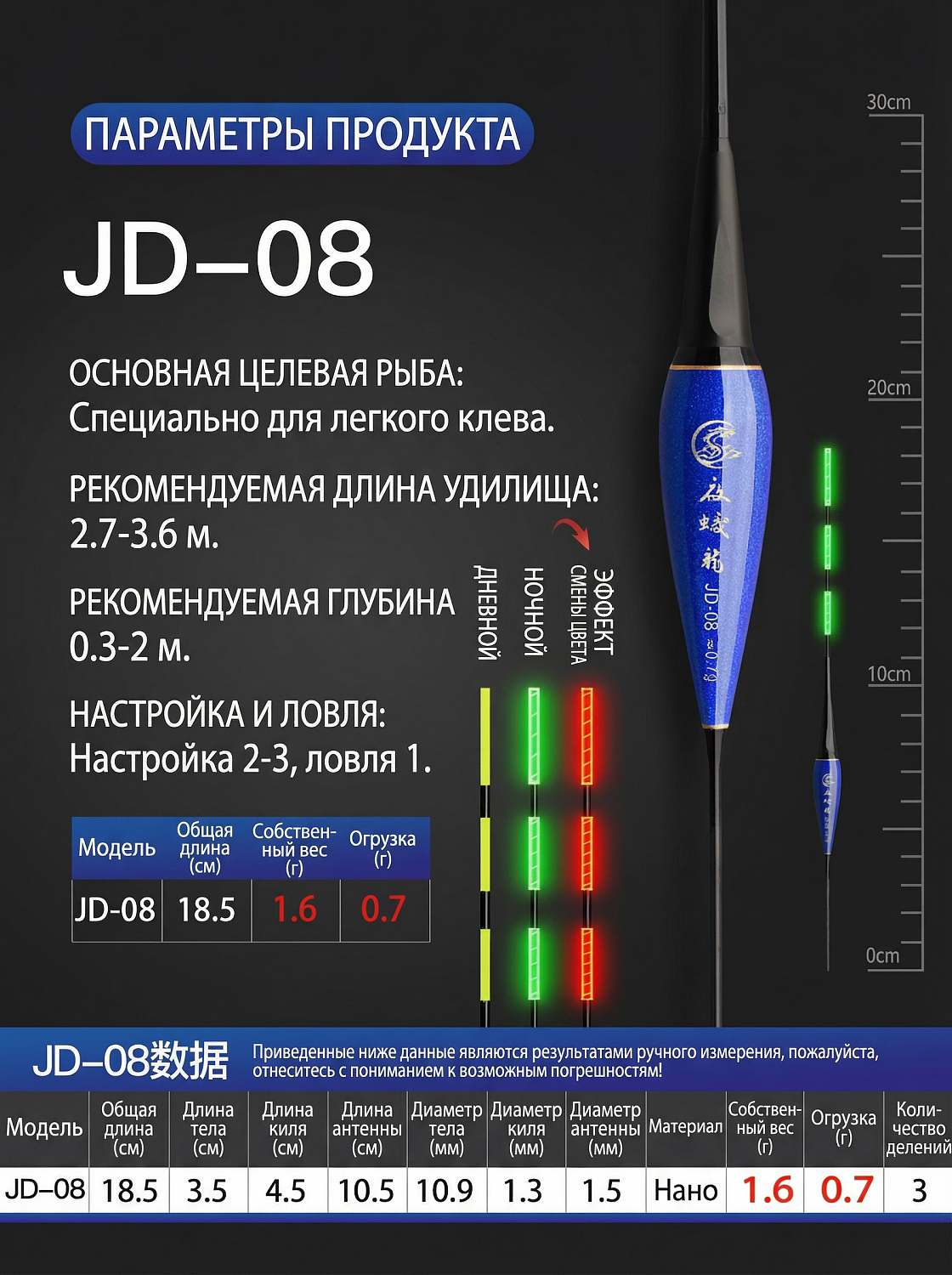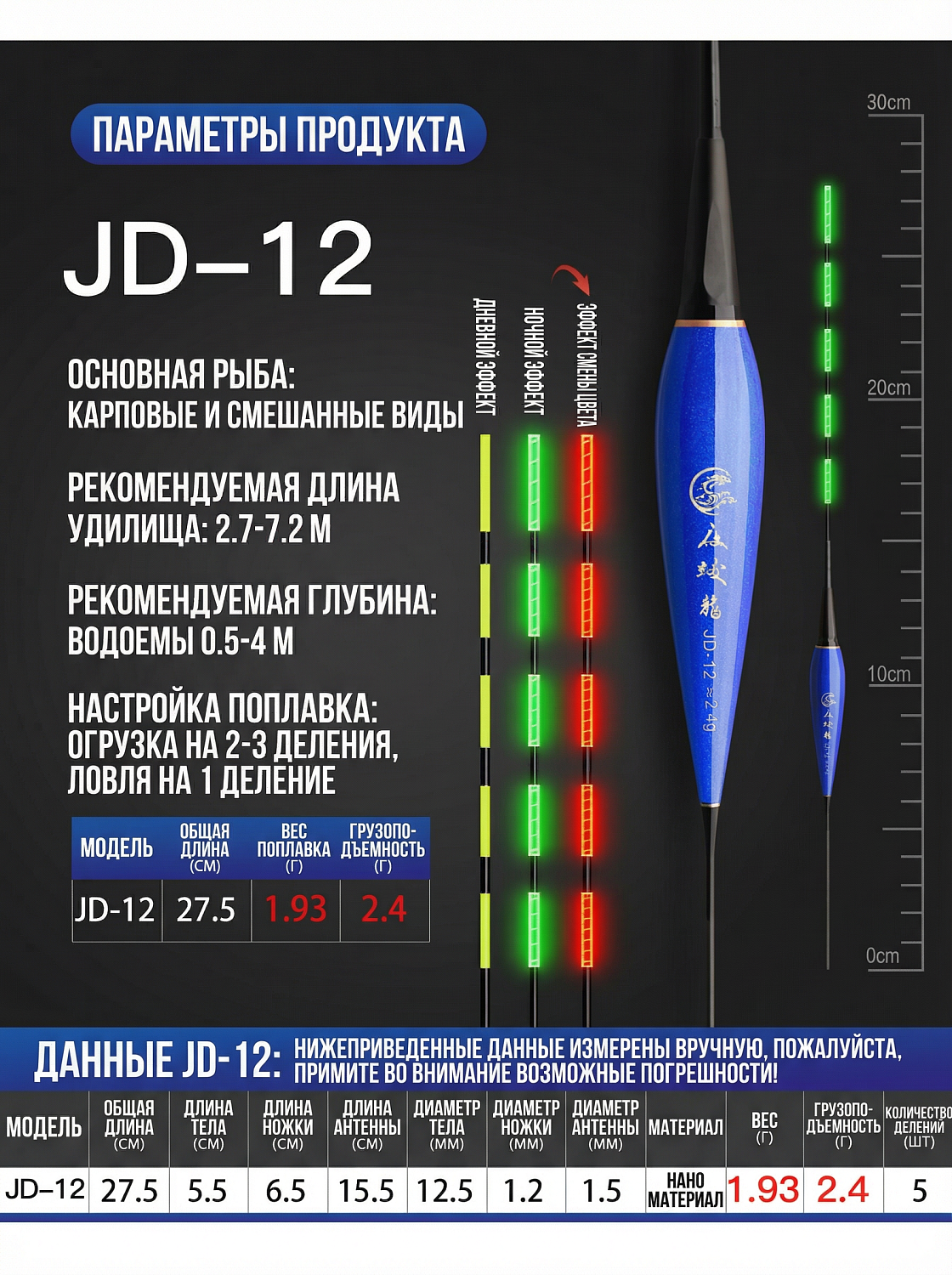 | Светящийся (умный) поплавок (2 шт). | S-JD#12 | 28см | 2,4гр. | 275 руб. | В корзину |