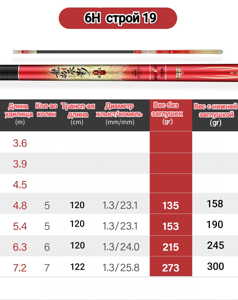 Удилище Херабуна Best Exclusive | BEST-EX#6,3-6H | 6,3 м | 19 строй | 6H | 5 100 руб. | Нет в наличии |