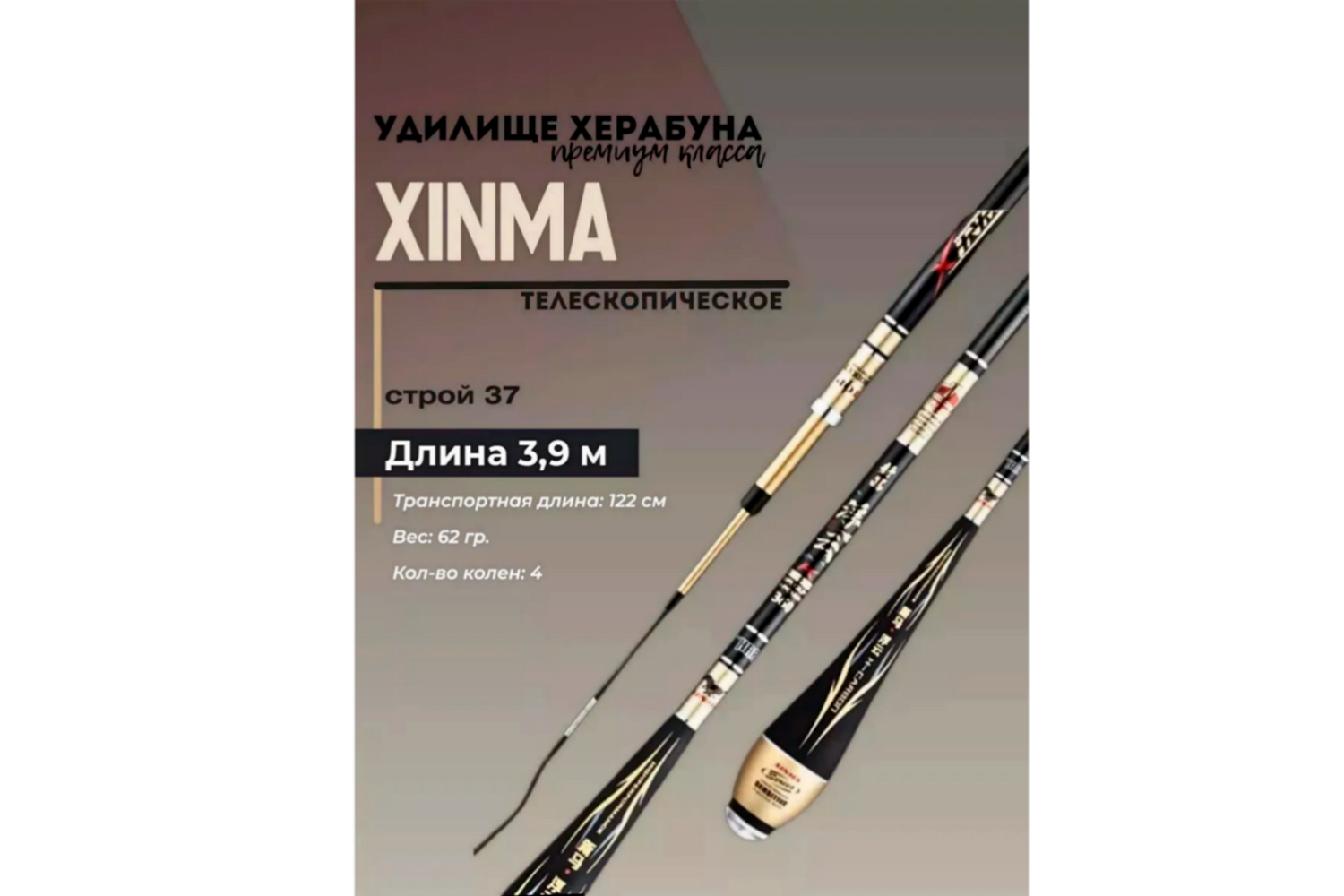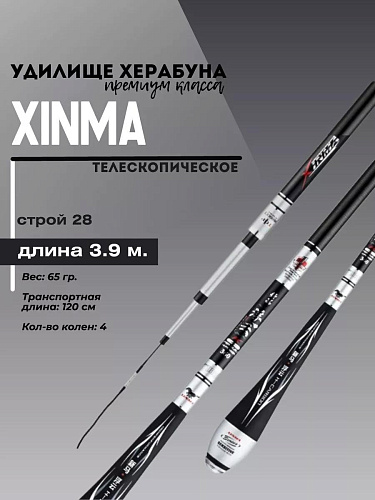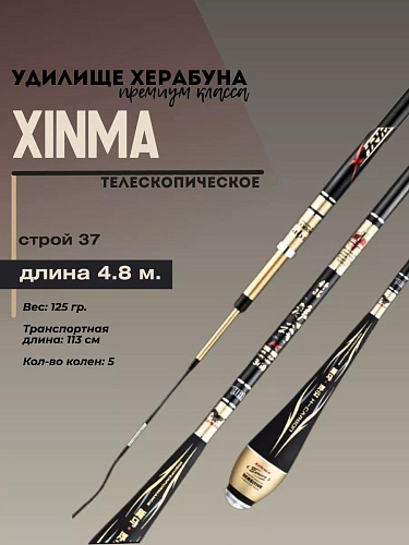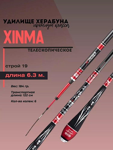 Удочка премиум-класса Xinma обладает медленным, мягким строем независимо от жёсткости. Под нагрузкой сгибается по всей длине согласно своему строю, но гарантированно удержит рыбу. На торце удилища предусмотрено крепление для присоединения к страховочной резине, как и положено классической маховой удочке для рыбалки методом херабуна. Леска крепится к специальному хвостику (веревочному коннектору), который закрепляется на вершинке удочки специальным разъемом.